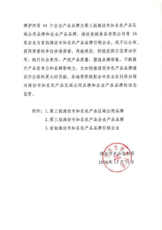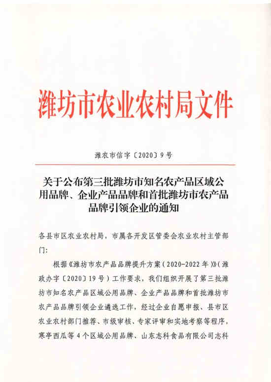 In order to further implement the rural revitalization strategy, further deepen the structural reform of the agricultural supply side, promote the construction of agricultural products brand, cultivate and build a batch of agricultural products brands with high visibility, reputation and strong market competitiveness, and play the leading role of the brand. After the recommendation of the Municipal Bureau, various checks, expert review, social publicity and brand release, "Wei Zhen" finally won the honor!