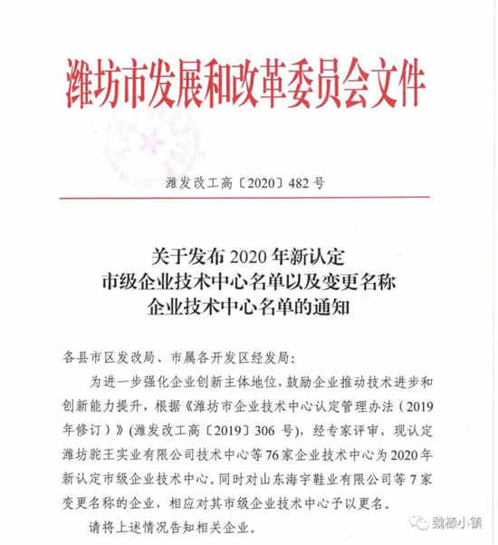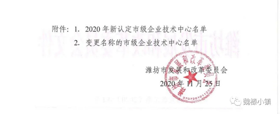 Enterprise Technology Center was recognized as Weifang Municipal Enterprise Technology Center