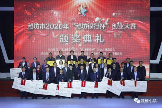 On October 27th, hosted by the Weifang City "Weifang Bank Cup" Entrepreneurship Competition Organizing Committee, Weifang City Human Resources and Social Security Bureau, Weifang City Finance Bureau, Weifang TV Station Weifang City 2020 "Weifang Bank Cup" Entrepreneurship Competition Finals and Award Ceremony Successfully held, Weifang Municipal Standing Committee Member, Vice Mayor Liu Jianguo and other leaders attended and presented awards.