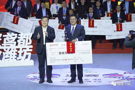 Liu Jianguo, member of the Standing Committee of the Weifang Municipal Party Committee and Vice Mayor, presents awards to the championship project