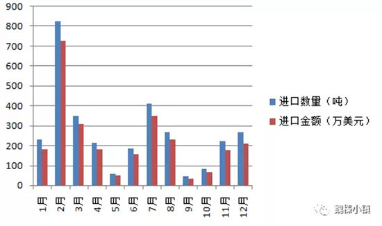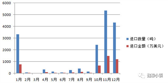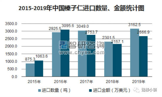Note: in 2019, the hazelnut was 31625.5 tons and the amount was 26669000 US dollars, of which 230.1 tons and 1.84 million dollars were imported in January, 826.3 tons and 72.74 million dollars were imported in February, 350.3 tons and 3.075 million dollars were imported in March, 2141 tons and 1.82 million US dollars were imported in April, 59.5 tons and US $502000 were imported in May, 1858 tons and 156.64 million dollars were imported in June, In July, the import amount was 409.1 tons, the amount was 3.497 million US dollars, the import amount was 2665.5 tons in August and the amount was 2.29 million US dollars, the import amount was 468 tons and the amount of 338000 dollars in September, 832 tons and 638000 dollars in October, 2238 tons and 1763000 dollars in November, 267 tons and 2.14 million dollars in December.
