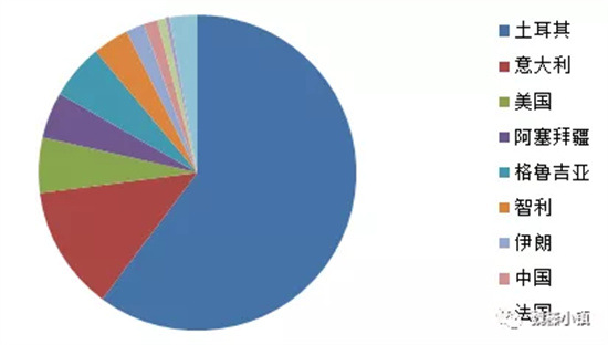 Note: the total supply of hazelnut in the world in 2020 / 2021 is 542897 tons, including 355000 tons in Turkey, 65800 tons in Italy, 25520 tons in the United States, 21800 tons in Azerbaijan, 21350 tons in Georgia, 17640 tons in Chile, 9092 tons in Iran, 6565 tons in China, 4250 tons in France, 2380 tons in Spain and 13500 tons in other countries.