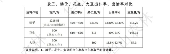 3) The oil yield of hazelnut is more than 12% and 40% higher than that of peanut. The same oil extraction process is adopted. The oil production of hazelnut per hectares is 2.2 times of that of one hectares of peanut, 5.4 times of that of one hectares of soybean;