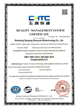 The company can produce 63,000 tons of hazelnut vegetable protein drinks, 400 tons of hazelnut dietary oil, 2,800 tons of hazelnut snack food and food raw materials, and provide hazelnut, diced hazelnut, hazelnut powder and other ingredients and hazelnut milk for many domestic enterprises and consumers who demand hazelnuts. , Hazelnut dietary oil, hazelnut noodles, hazelnut snack foods and other processed products.